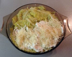Vacsora: rakott kel. Kelkáposztát szombaton vettem a piacon, a múlt héten elkészített és lefagyasztott húsos ragút, reggel vettem ki a mini fagyasztóból, rizs pedig még volt itthon.